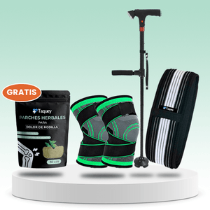 El Bastón de Apoyo añade un elemento crucial de seguridad, ayudando a quienes necesitan un poco más de estabilidad al caminar, mientras que las Rodilleras Taquey™ brindan el soporte necesario para aliviar la presión y reducir el dolor en las rodillas, permitiéndote disfrutar de una mayor libertad de movimiento.